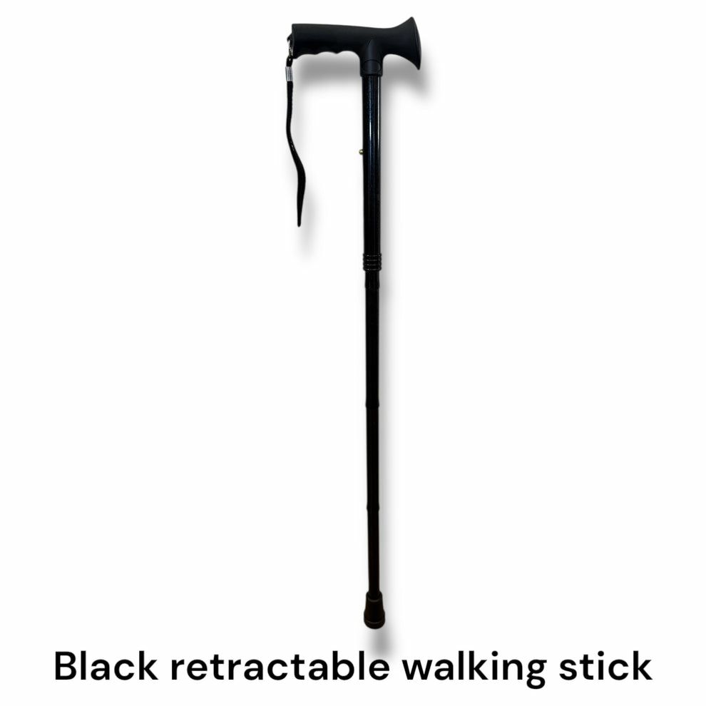 6. Black retractable walking stick: this stick has a comfortable rubber handle. Floor to handle height range 84-94cm.
