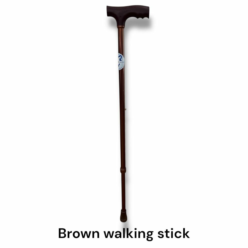 3. Brown walking stick: This stick has a plastic handle. Floor to handle height range 69-92cm.