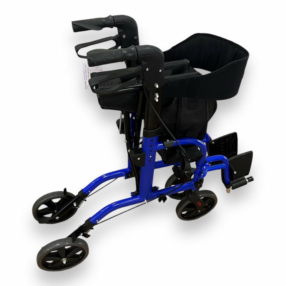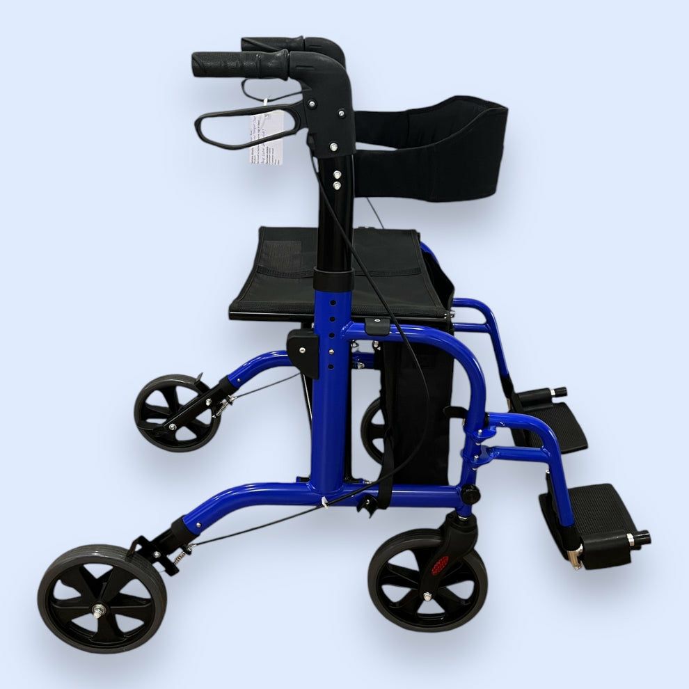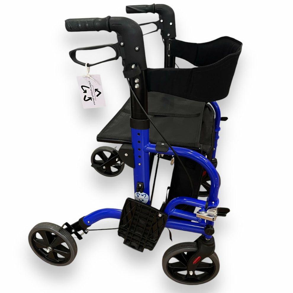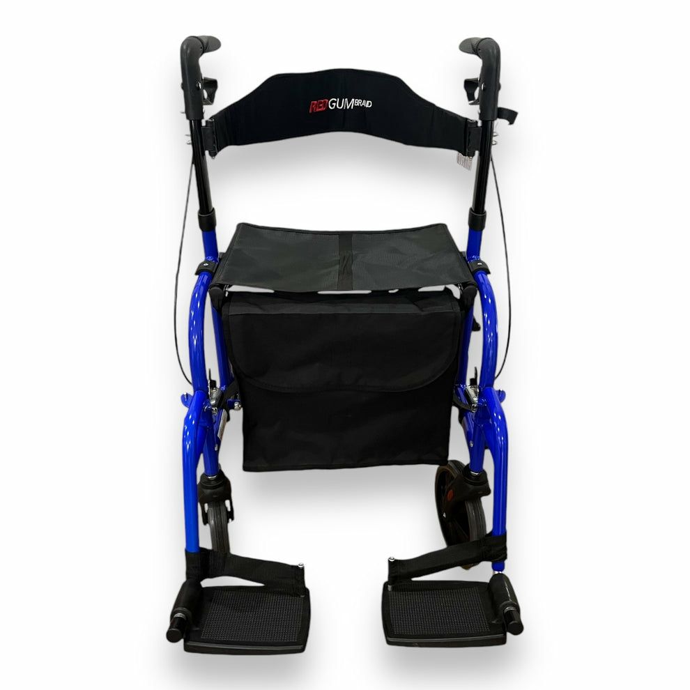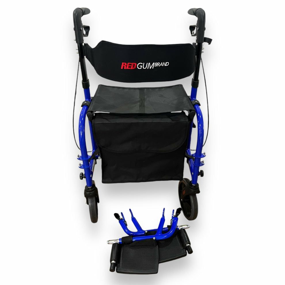 This walker is in as new condition with no marks or scratches. The Redgum four wheeled walker converts into a transit (attendant push) wheelchair for occasional use. It is great for users who can walk in the community but also experience episodes of fatigue. It has been cleaned and sanitised, ready for its next user.