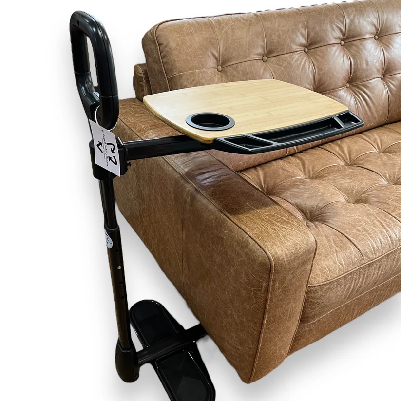 This table is in “as new” condition. This table is great for people with impaired mobility. With the handle and steady design, it doubles as a standing aid and a tray/table. It is compatible with most chairs/beds/sofas